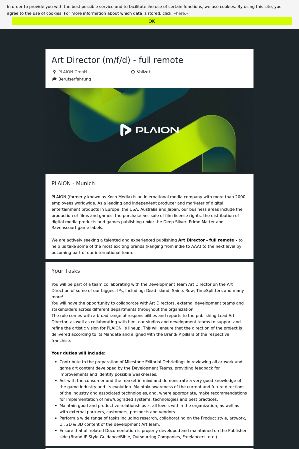 Art Director M F D Full Remote Job At Koch Media In Munich Germany 58406720 Tapwage Job Search